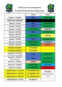 Training sessions are held on Tuesdays and Thursdays at the Proserpine Junior Sporting Complex Grounds. 333 Crystalbrook Rd, Proserpine. U6s only trains on Thursdays.